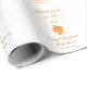 Wrapping paper for a baby shower with a peach theme. The item says "A little peach is on the way". The design includes a smiling, cartoon, peach and a scribbled heart. Customise the words, add this to your cart, and have a wonderful baby shower.