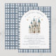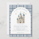 A Little Prince Royal Castle Baby Shower Invitation - A Little Prince Royal Castle Baby Shower Invitation - an adorable baby shower invitation featuring a royal castle in blue and white with gold stars above. Invitation is accented with dusty blue plaid, and modern typography. An invitation fit for his royal highness!
