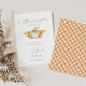 Our autumn-inspired watercolor pumpkin design features lovely plaid orange gingham patterns, fall leaves, and a white pumpkin. Celebrate your soon-to-be fall baby with your friends and loved ones with our minimal and classy baby shower design.