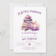 Featuring lavender pumpkins, magical books, autumn leaves, and whimsical lilac tones, this design is perfect for a fall baby shower with a touch of Halloween charm.