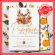 autumn baby shower invitation, deer baby shower invitation, baby shower invitation, baby shower, new baby, baby announcement, baby shower card, invitation card, personalised invitation, premium cardstock, matching envelopes, fall theme, autumn theme, floral design, pumpkin design, baby shower decorations, baby shower theme.