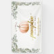 Create a charming fall focal point with this A Little Pumpkin Is On The Way baby shower banner, featuring a warm watercolor pumpkin, autumn greenery, and elegant gold-style lettering. This backdrop is perfect for staging the dessert table, photo area, or gift display, adding a cosy seasonal touch to your celebration. Personalise with the mum-to-be’s name and shower date for a meaningful keepsake that beautifully completes your fall baby shower décor.