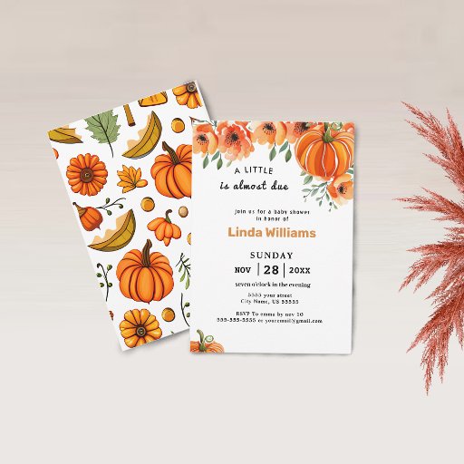 A Little Pumpkin Fall Floral Baby Shower Invitation features a minimalist layout and is the perfect autumn floral baby shower. Customise this invitation by adding information. There is no minimum order quantity.