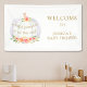 Decorate your baby girl's baby shower with this pretty welcome banner. It features a cute watercolor pumpkin and flowers in shades of pink, coral, and gold. Easily customisable. Original Watercolor © Michele Davies.
