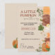 A little pumpkin is on the way baby shower. Glitter pumpkin baby shower decor invite.