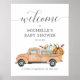 Welcome everyone with this beautiful Little Pumpkin is on the Way gender reveal welcome poster. This design features a vintage orange truck full of colourful pumpkins. Easily edit all of the names, event and date! See the whole collection for more matching items! Choose your favourite size. Place in a frame when you receive the print.