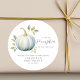 A little pumpkin on the way blue baby shower classic round sticker. Easy to change the text. Pretty watercolor design for an autumn baby shower.