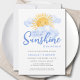 It says "A Little Ray Of Sunshine Is On His Way!" in stylish blue typography.