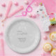 A little Snowflake Baby shower grey Paper Plates Pastel grey watercolor with snowflakes modern casual script.