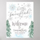 Adorable calligraphy with snowflakes, winter-themed baby shower welcome sign. Easy to personalise with your details. Check the collection to find matching items as enclosure cards.