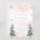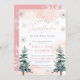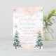 A little snowflake is on the way! Blush baby shower invitation with snowflakes pine trees, and a boho design.