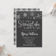 Elegant winter baby shower invitation featuring faux silver glitter snowflakes with a typography text that says "A little snowflake is on the way." The background is charcoal grey. Perfect gender neutral design for both baby girls and boys.