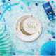 Bring a touch of elegance and sparkle to your baby shower with these A Little Star Is On The Way paper plates. Featuring a shimmering gold crescent moon and dangling star accents against a crisp white background, these plates make every table setting feel magical. Perfect for serving snacks, cake, or light meals, they’re a stylish way to celebrate your little star’s arrival. Designed to coordinate seamlessly with the entire A Little Star collection, they’re an easy way to create a cohesive and unforgettable party theme.