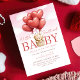 Valentine Baby Shower Invitation: Bear & Heart Balloons invite, a little sweetheart | Red Baby Shower Invite | Heart Love Baby | Bear Baby Shower.