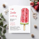 A chic white background. Decorated with a large watermelon pop stick. Personalise and add the name of the mother to be and party details. Text: A little Sweetie is on the way.
