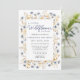 The "A Little Wildflower Boho Watercolor Baby Shower Invitation" is a charming and graceful choice that beautifully sets the stage for a joyful celebration. This invitation features an enchanting array of wildflowers in soft shades of blue and white, interspersed with golden accents, creating a warm and inviting atmosphere. The bohemian-inspired design is perfect for a baby shower that celebrates the beauty of nature and the anticipation of a new life blossoming. This delicate and artful invitation is sure to delight guests and create a sense of excitement for the upcoming special day.