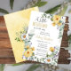 "A Little Wildflower Is On The Way" girl baby shower with daisies, seeded eucalyptus and lavender florals on front with a coordinating bouquet on a washed yellow watercolor background with sage green tiny polka dots. Perfect for celebrating your spring to early summer baby shower.