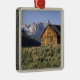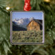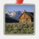 A log cabin and the Sawtooth Mountains in Metal Tree Decoration