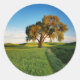 A lone tree surrounded by rolling hills of wheat classic round sticker