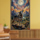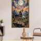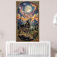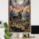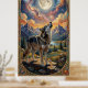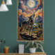 A lone wolf howls at a moon poster
