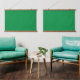 A lush green backdrop with a clean white square po hanging tapestry