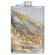 A luxurious gold and white marble background hip flask