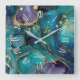 Transform your space with a stunning marble backdrop in shades of luxurious turquoise, blue, and gold, embellished with glittery accents that catch the light. Adorned with elegant white Roman numerals, this customizable wall clock lets you add a personal touch with your name.