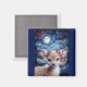 A whimsical fawn stands in the foreground, surrounded by a magical winter night with a full moon glowing brightly in the sky. In the background, a cosy cabin nestles among snow-covered trees.