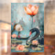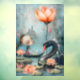 A whimsical scene depicts a serene young girl in a small boat surrounded by blooming water lilies and a graceful black swan. In the background, ethereal flowers and a distant castle add a dreamy, mystical atmosphere. Digital Art Photoshop CS5