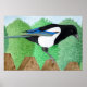 A Magpie perched on a fence Poster