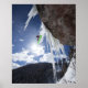 A male snowboarder jumps off an ice waterfall poster