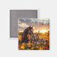 A pretty horse themed magnet. A beautiful scene of a mama horse and her baby foal sitting on the Autumn leaves at dusk.