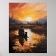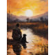 Capturing a timeless bond between man and his loyal companion, this exquisite oil painting brings to life a serene moment by the lakeside. As the sun gracefully dips below the horizon, the man and his faithful dog sit side by side, sharing a quiet connection that words can't express. The tranquil waters mirror the vivid hues of the sunset, casting a warm and gentle glow on their companionship.