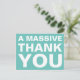 A massive thank you postcard with modern big fonts on bright colour background.