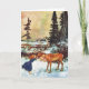 Whoever receives this card will smile. This snowy scene highlights A Merry Moose Kiss in the forest . A young girl meets up with a moose and she is so delighted she gives him a big kiss. A magical and heart warming vintage image.