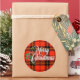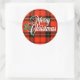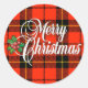 Merry Christmas Greeting in white fancy script typeface on a striking red and black plaid. Simple and elegant. Customisable Cards