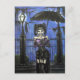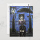 A cute but sinister looking girl dressed in Victorian Goth attire, taking a midnight stroll in New Orleans. From my original coloured pencil and ink drawing.