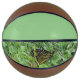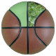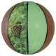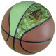A Full Size BasketBall ,with Panel#1 = a Light Green Colour, Panel#2=a Picture of a Beautiful Monarch Butterfly , laying in the grass on it.