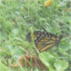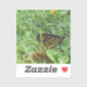A Tiny 2”x2” Custom Cut Vinyl Sticker ,Glossy Transparent, with a Beautiful Picture of a Monarch Butterfly, laying in the grass, on it,