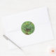 A round sticker ,with a Beautiful Picture of a Monarch Butterfly laying in the grass on it.