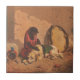 A Monkey And A Dog With A Large Tambourine Ceramic Tile