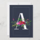 A Monogram Last Initial Modern Blue Floral Wedding Invitation