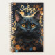 An illustration of a mysterious majestic black cat with a glitter of circles and stars. You are able to personalise the name.