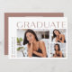 An elegant and modern graduation announcement card featuring three photos (one square and two horizontal), with "graduate" in across the top. Personalise with your graduation year, name, and school along the left side. Add a personal message to the back, along with an additional photo.