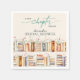 These elegant napkins feature a whimsical stack of vintage books resting on a rustic wood slice, surrounded by delicate watercolor florals and lush greenery. The romantic pastel blooms, soft botanical details, and hand-lettered script create a warm, inviting feel — the perfect finishing touch for your bridal shower tablescape.