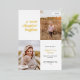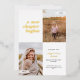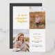 This modern graduation announcement features the words "a new chapter begins" on the top left of the card. It has spaces for two vertical photos to celebrate your graduate's journey so far, a photo from the past and a photo from the present. The front of the card has space for the graduate's name, class year, school, and future plans. The back of the card has space for additional text and can be used as a graduation party invitation or to write a personal message.