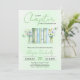 A New Chapter begins watercolor floral book gender neutral green baby shower Invitation. Invite friends and family to gather in celebration of a new beginning with this exquisitely crafted baby shower invitation. Designed with book lovers in mind, this charming card sets the scene for a memorable gathering, honouring the mother-to-be. Adorned with a beautifully arranged books wrapped in rope and complemented by mason jars filled with delicate flowers and green butterflies, this invitation radiates literary charm. The elegant blend of serif and script typography emphasizes key details, including "Chapter" and the mother’s name, adding a thoughtful and personal touch. Its soft green watercolor background evokes a sense of anticipation, ensuring this invitation becomes a treasured memento of the joyous occasion.