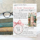 Personalize this cute modern library card pink bows and book theme baby girl shower invitation featuring watercolor books, girly bows, wildflower accents, and sweet event timeline with custom mommy-to-be's name shower date stamp - it's perfect way to celebrate your new girl mom! Easily add your wording to make it your own. You may edit each design component further for perfect spacing and placement - simply click the blue "Edit using design tool" button at the bottom of the "Personalize This Template" window, navigate to the left column "layers" tab, select the front or back side layer, then click on the layer element you would like to change on the design screen, and click "done" to apply edits. Order prints and envelopes, and/or download the printable digital file, great for evites, to print at home, or send to the print shop of your choosing! Discover the matching books for baby cards, diaper raffle card, bookmark thank you favors, + the vintage teddy bear & books version of this invitation and more in the full collection above. ♥ Custom design requests, product additions to the collection, and invitation template questions are always welcome - click the "message" button or email direct: contact@figandlilyco.com. Design is lovingly created by Fig and Lily Studios - sending blessings and thanks for being here with us!!