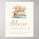 A New Chapter Begins. Invite guests to share their wisdom with the Wildflower and Books advice poster, a delightful way to gather heartfelt words for the bride-to-be. Featuring romantic watercolor illustrations of stacked books and delicate wildflowers in dreamy hues of pink, blue, green, and gold, this sign captures the essence of a storybook love. The ivory backdrop, retro typewriter font, and hand-lettered gold script create a vintage-inspired charm that complements any bridal shower setting. As guests pen their best advice, this poster becomes a cherished keepsake, filled with words that will guide the bride into her happily ever after. Start collecting love-filled wisdom today!