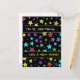 This fun, multicolored postcard design features a pattern of star shapes of various sizes and coloured a variety of colours on a black background. It also features a customised family surname and the message "... HAS A NEW HOME!" on the front, along with a custom message containing the family’s new contact information on the back. It could be used to notify friends, relatives, and others about a family’s new address and phone number.